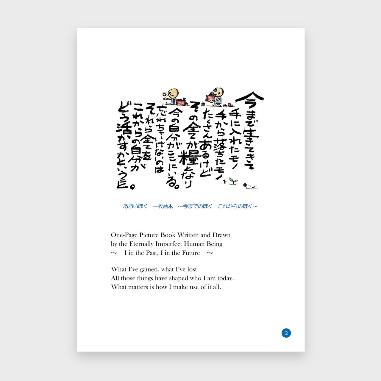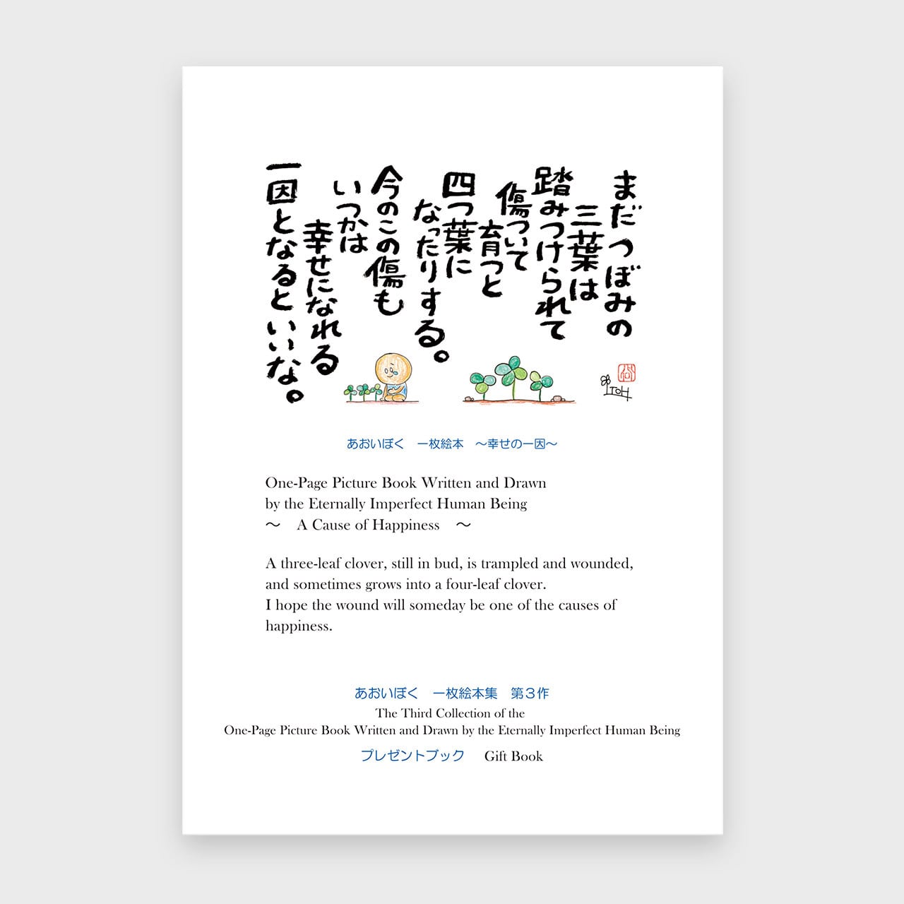 約10年前に発刊された「あおいぼく 第2作」が完売後も続く「絵本集はありませんか?」という声に応え、このたび新たに英訳を入れて「第3作」が発刊されました。