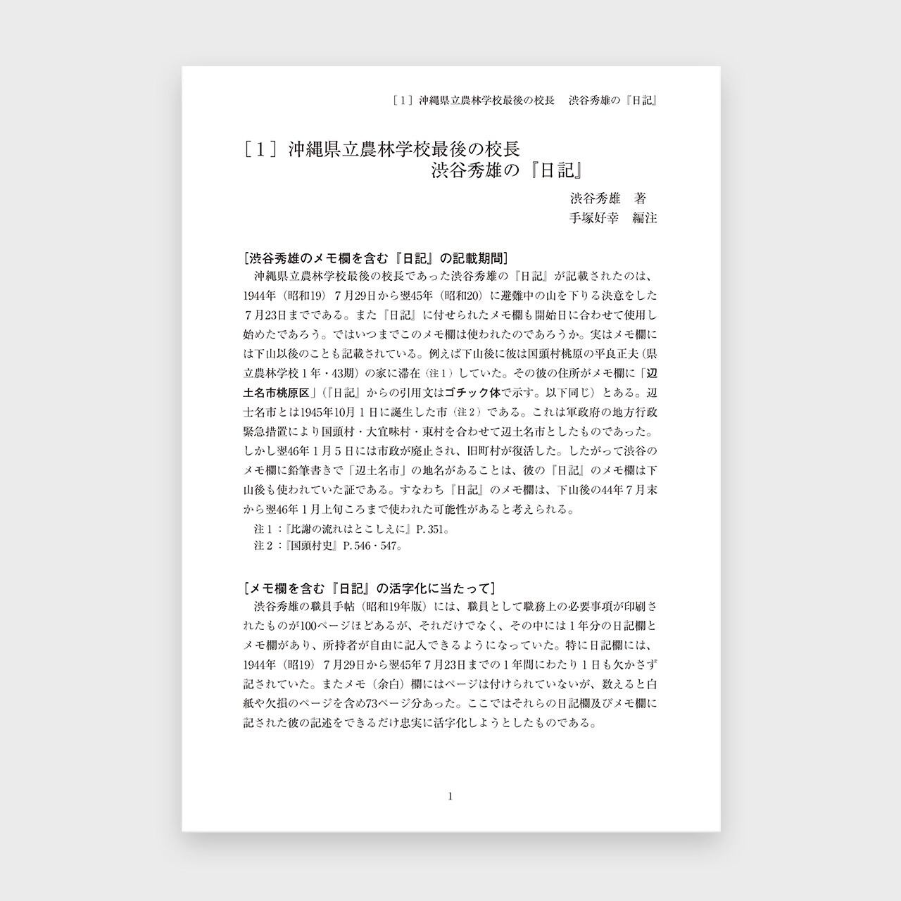 沖縄県立農林学校最後の校長 渋谷秀雄の沖縄戦中日記|渋谷秀雄 著・手塚好幸 編注|研究評論|自費出版